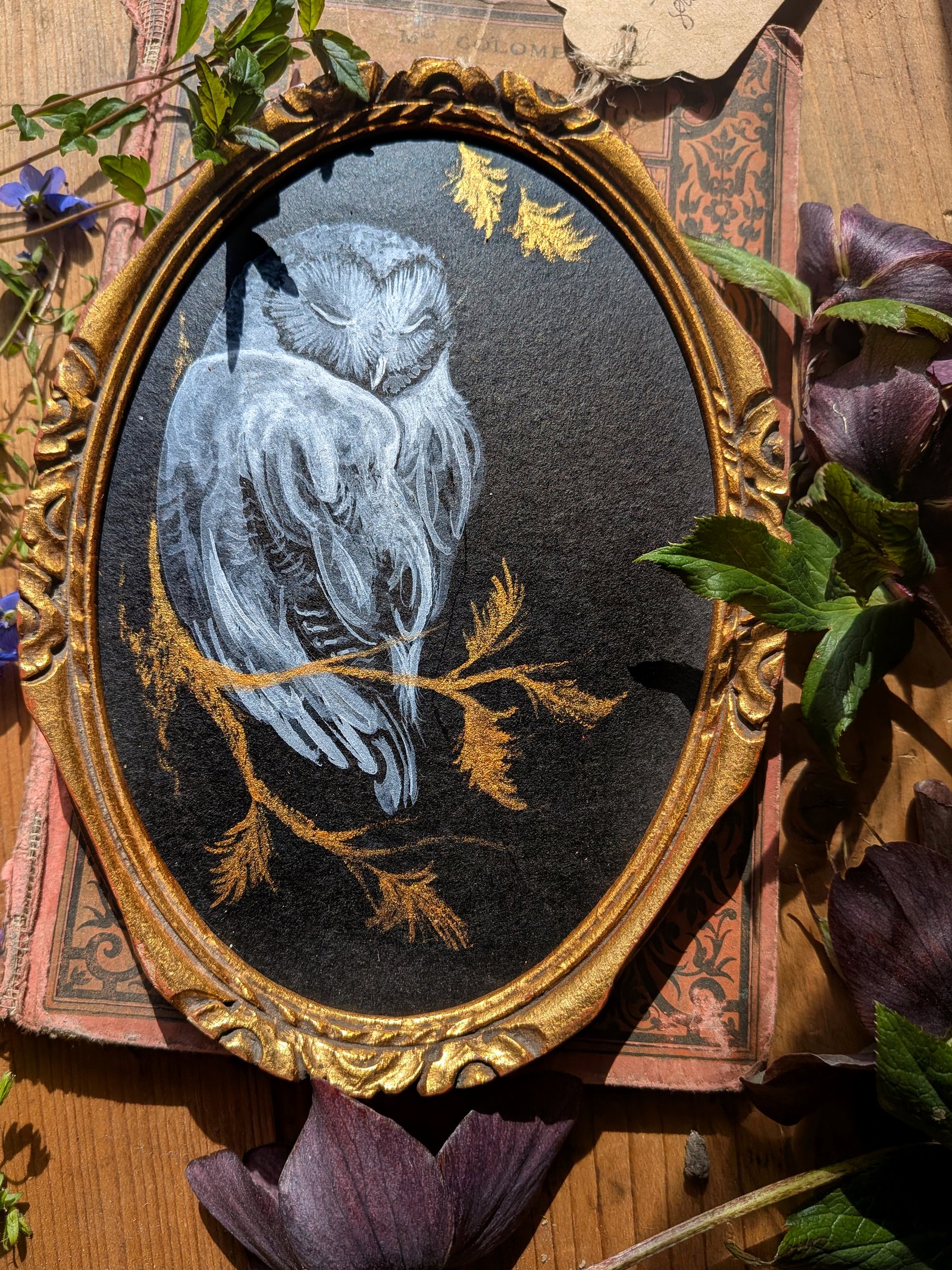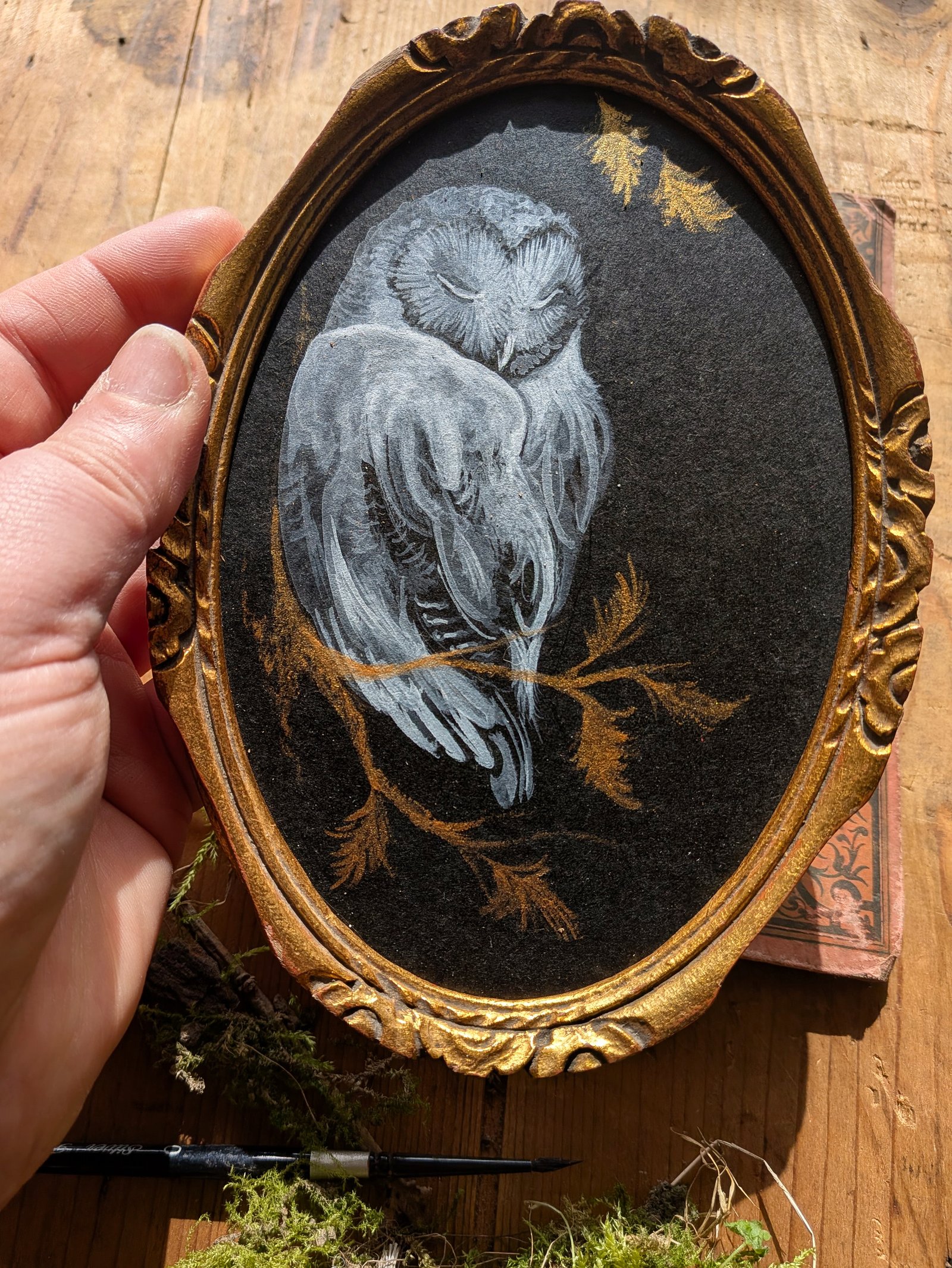 « Douce hantise » Gouache blanche d’une chouette effraie