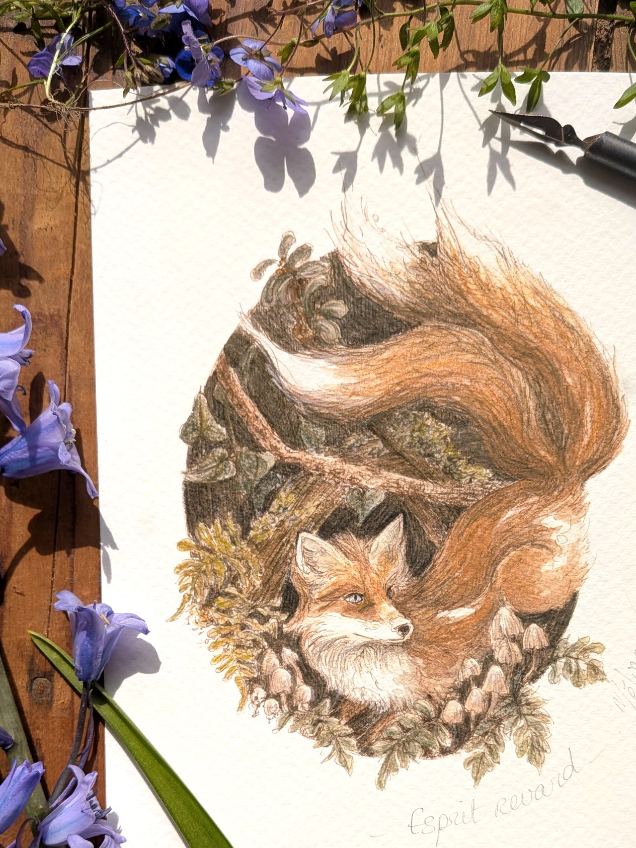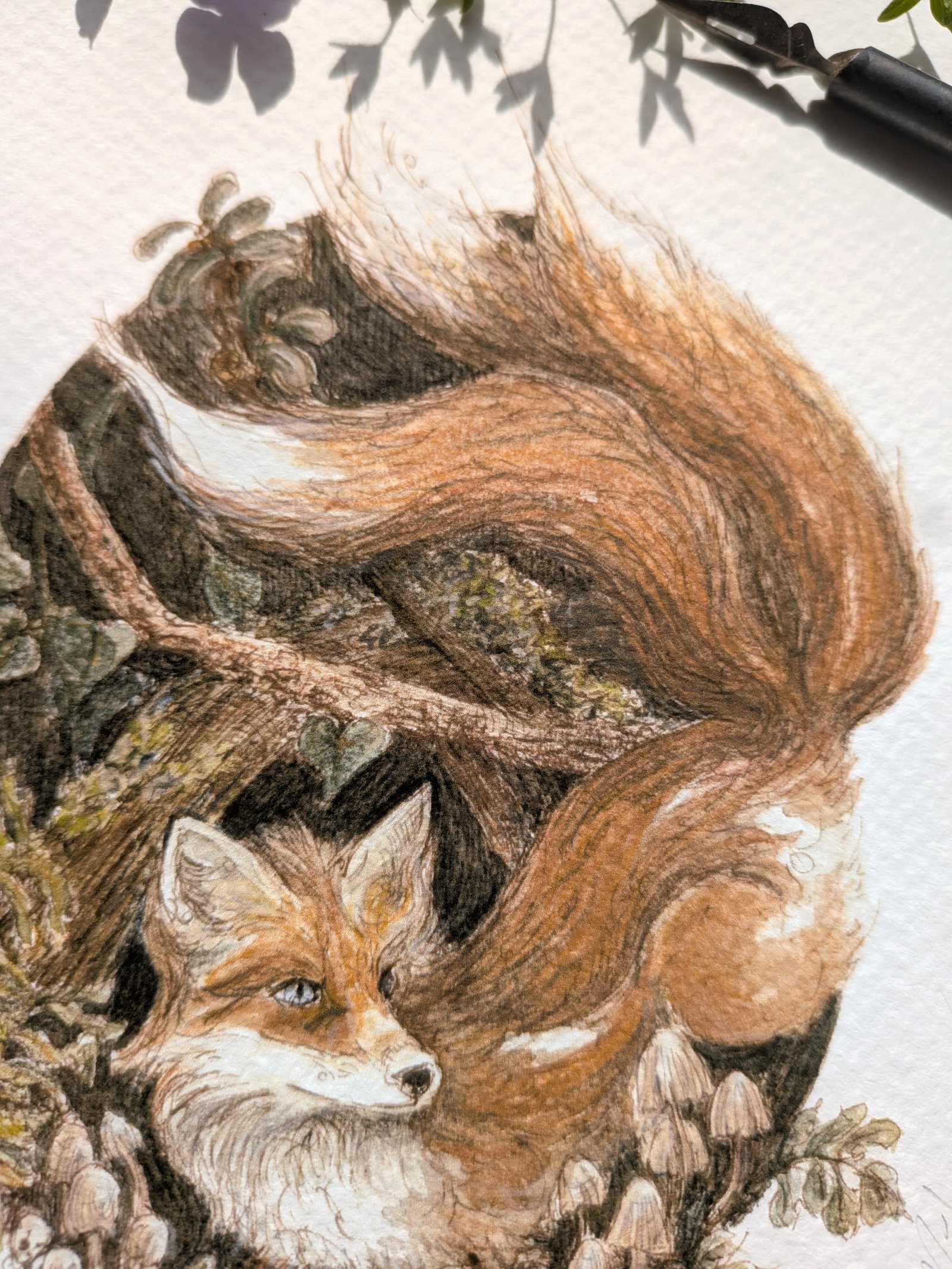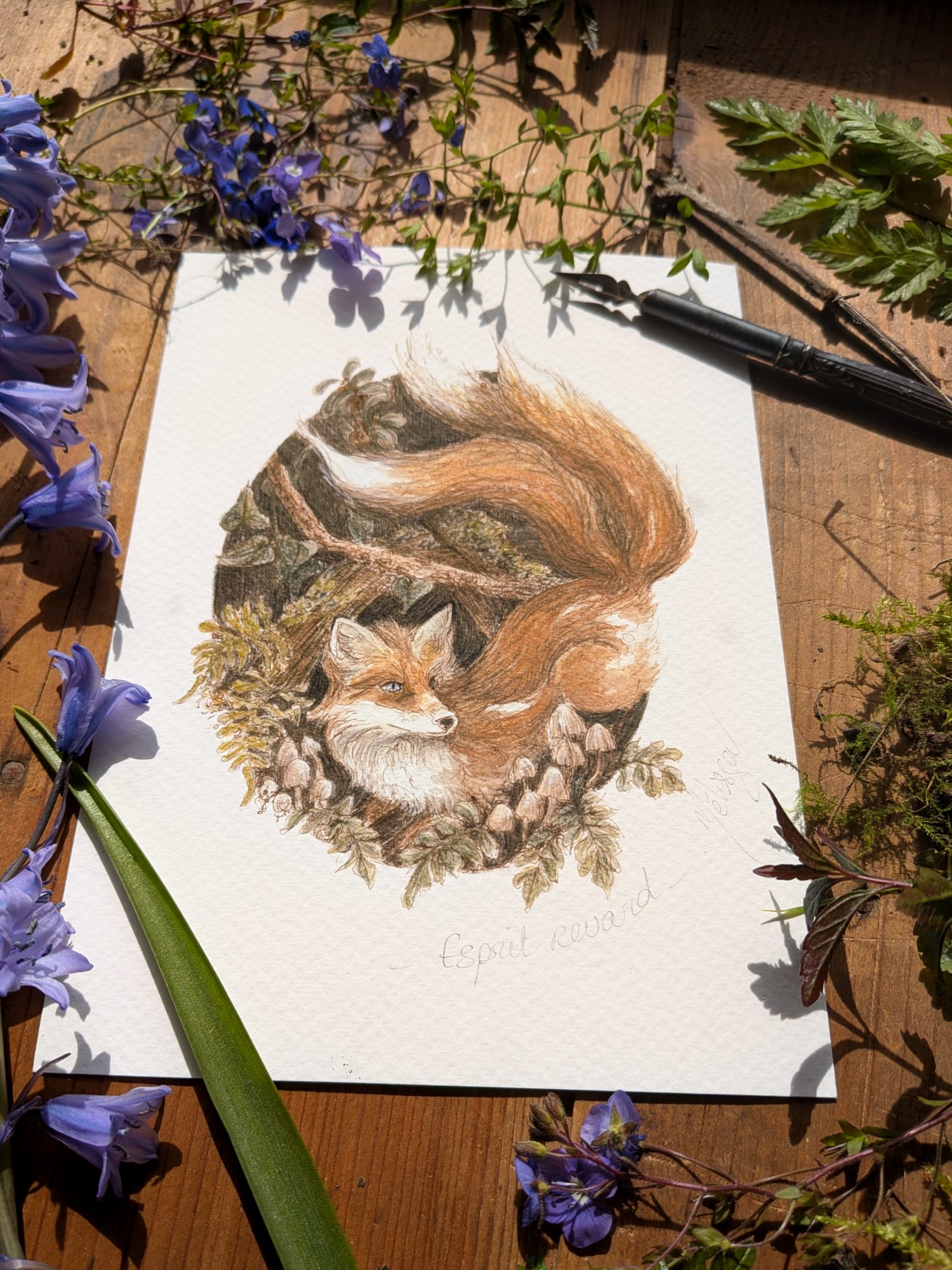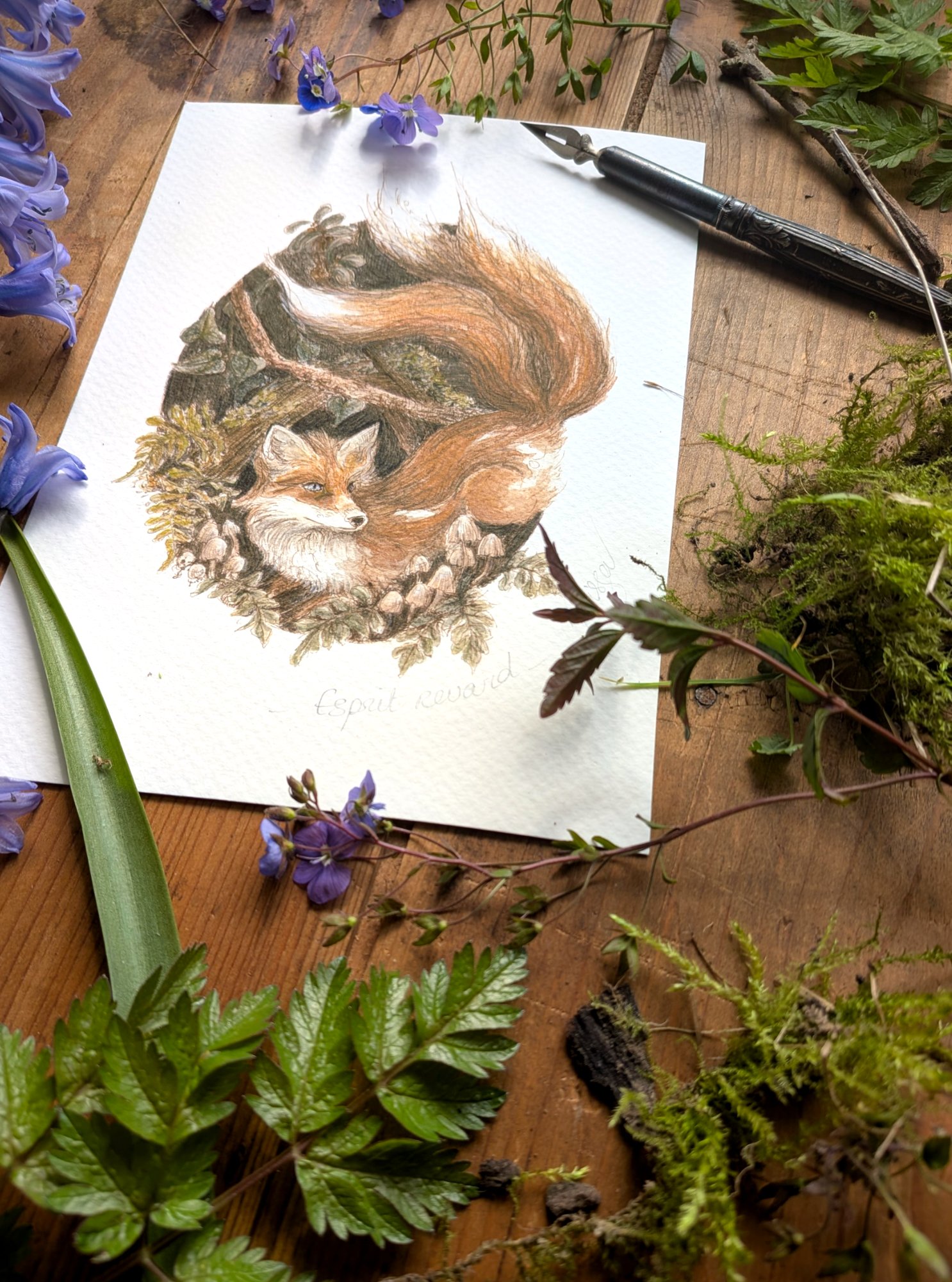 Esprit renard – illustration nostalgique à la plume et aquarelle