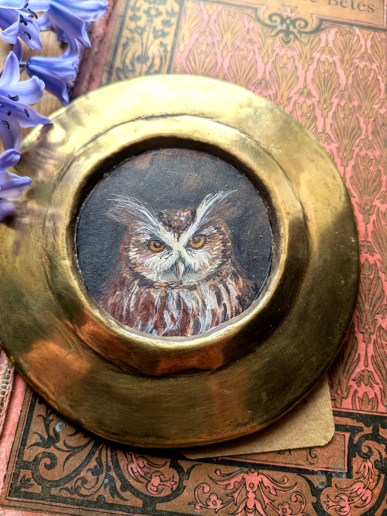 « L’oeil du vieux chêne » – hibou et cadre en laiton