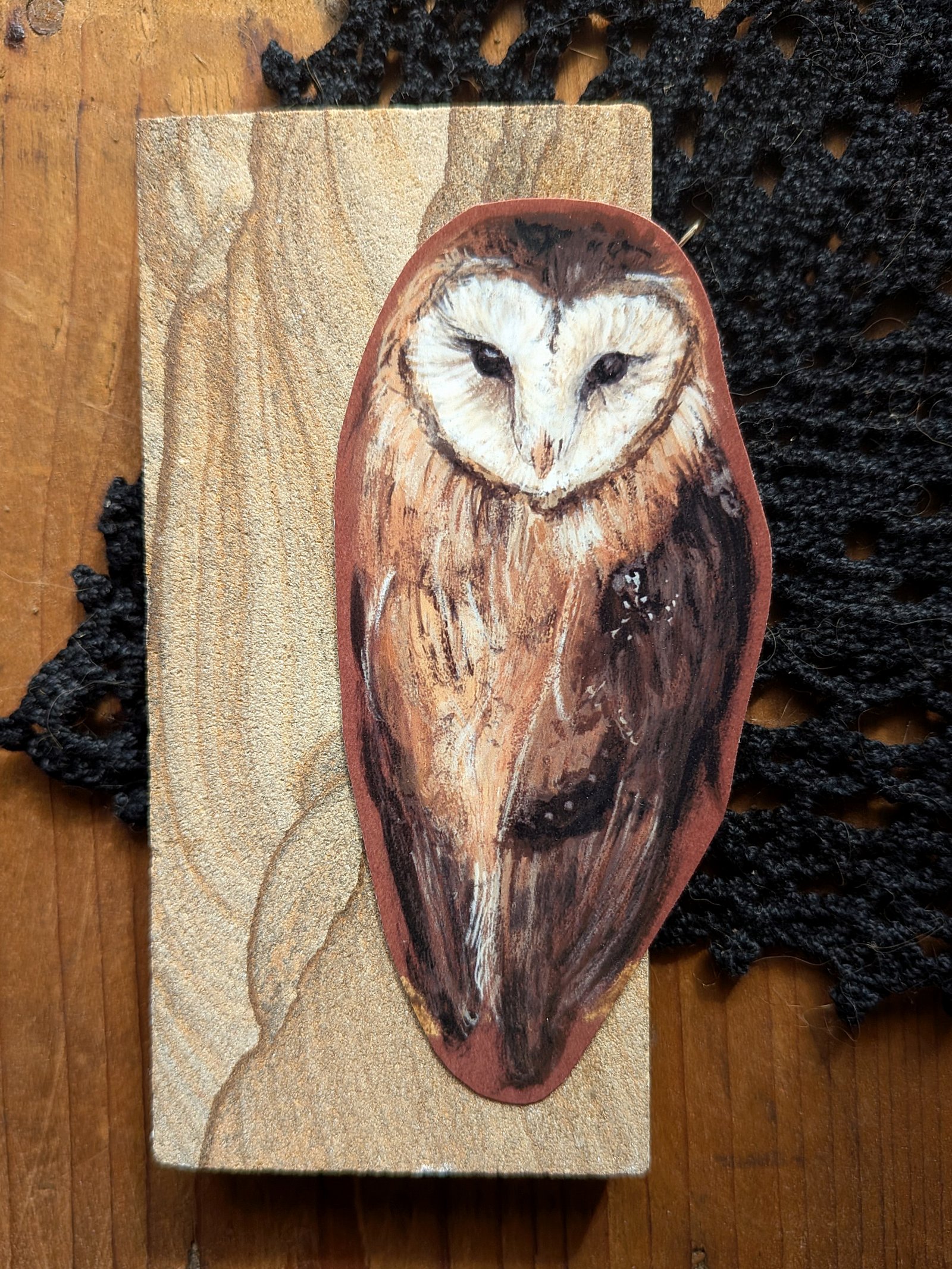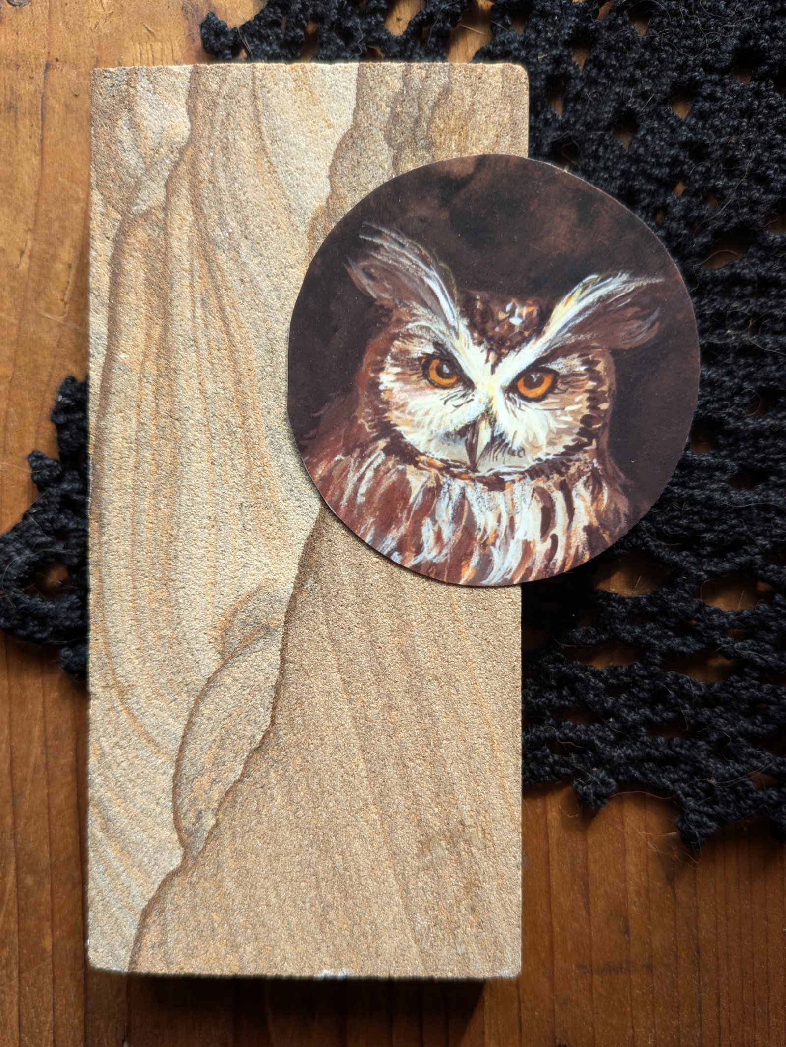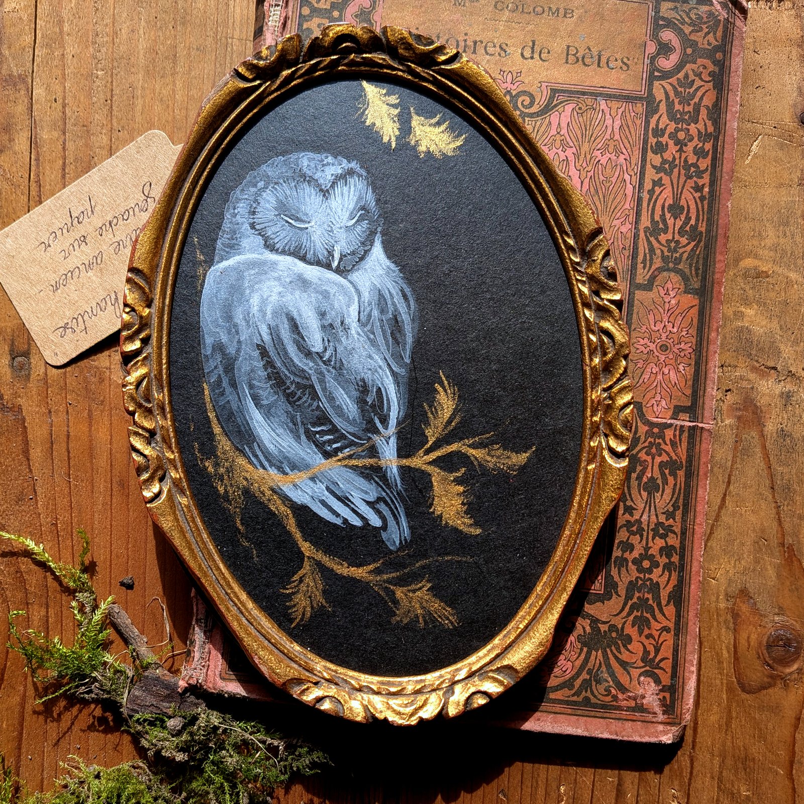 Chouettes et hibou, j’ai peint des petites gouaches pour des petits cadres particuliers.