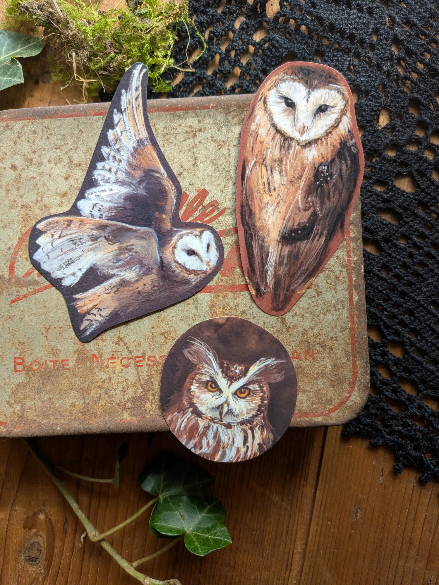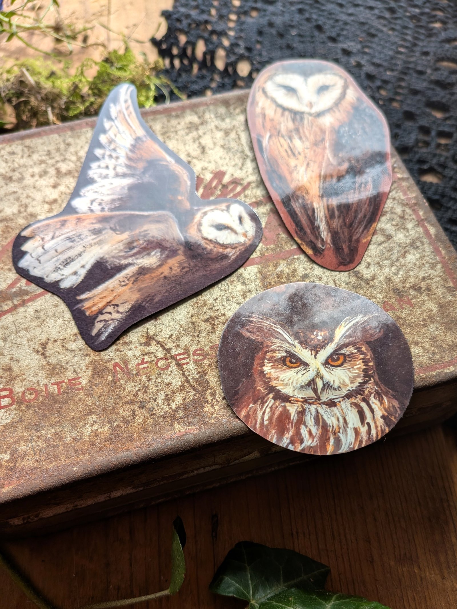 | modèle | chouette en vol La chasseresse, chouette sage bordeaux, Hibou, l'oeil du vieux chêne, lot de 3 |
