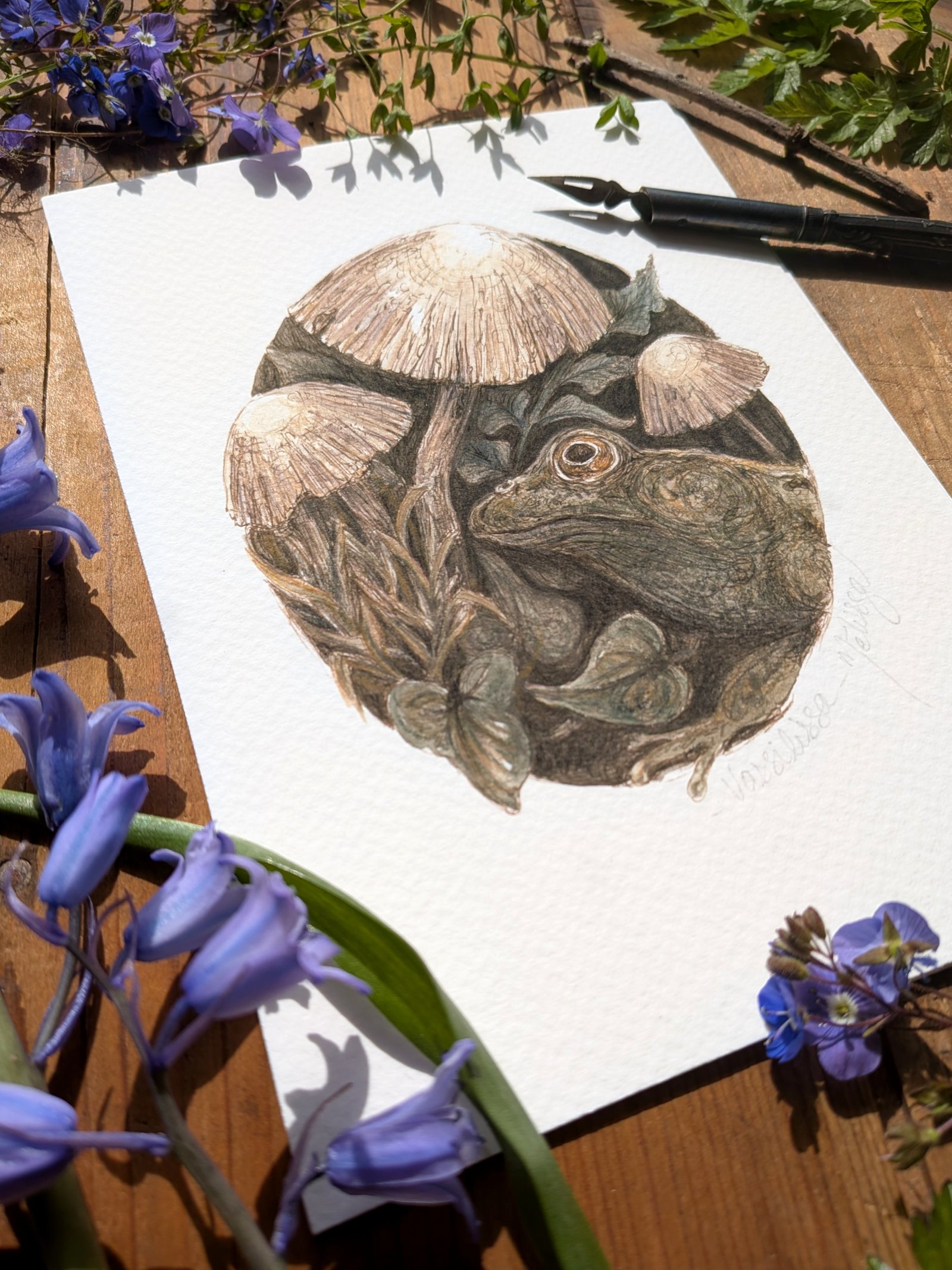 Vassilissa, princesse grenouille – illustration nostalgique à la plume et aquarelle